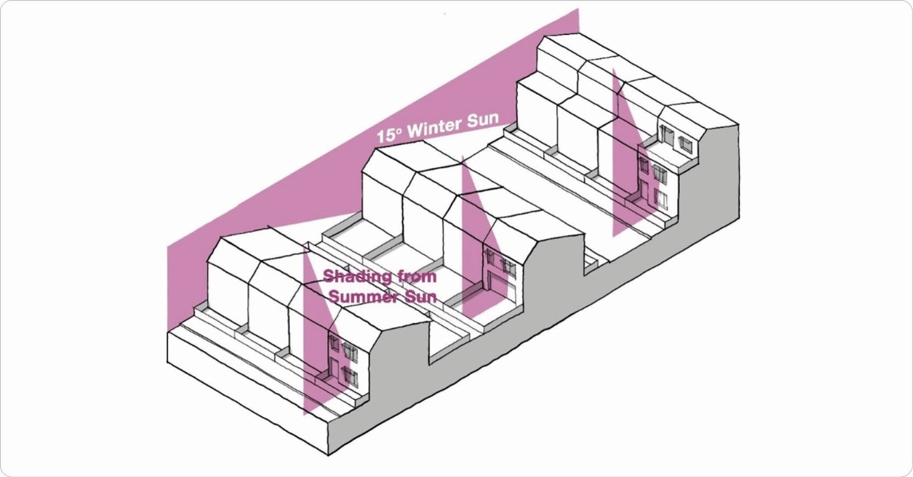 6.12.5. Buildings must be designed to reduce energy demand and maximise fabric energy efficiency including such measures as building orientation; high levels of insulation of roofs, floors, and walls; maximising airtightness; and using solar gain through window/ door orientation whilst avoiding overheating.